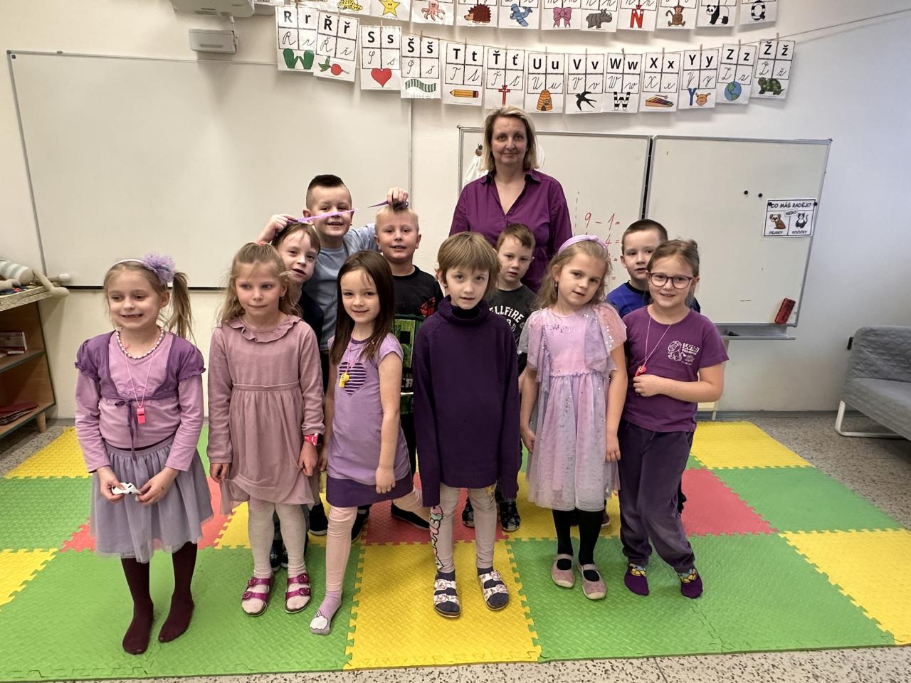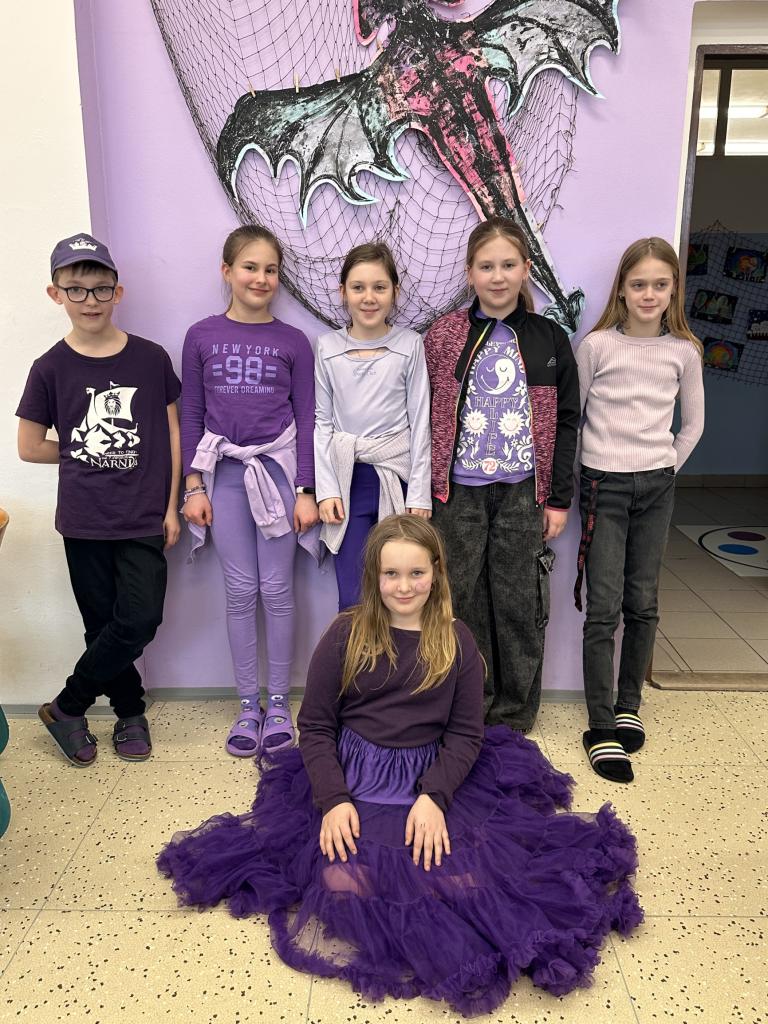 Žáci i učitelé se zapojili do akce Wellbeing a přišli oblečení do fialové - barvy duševního zdraví. Celý týden jsme si připomínali, že duševní zdraví je důležité. Naši čtvrťáci si i uspořádali společnou pomalou snídani.
