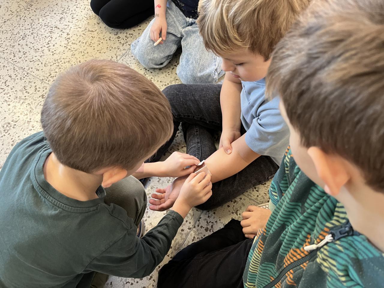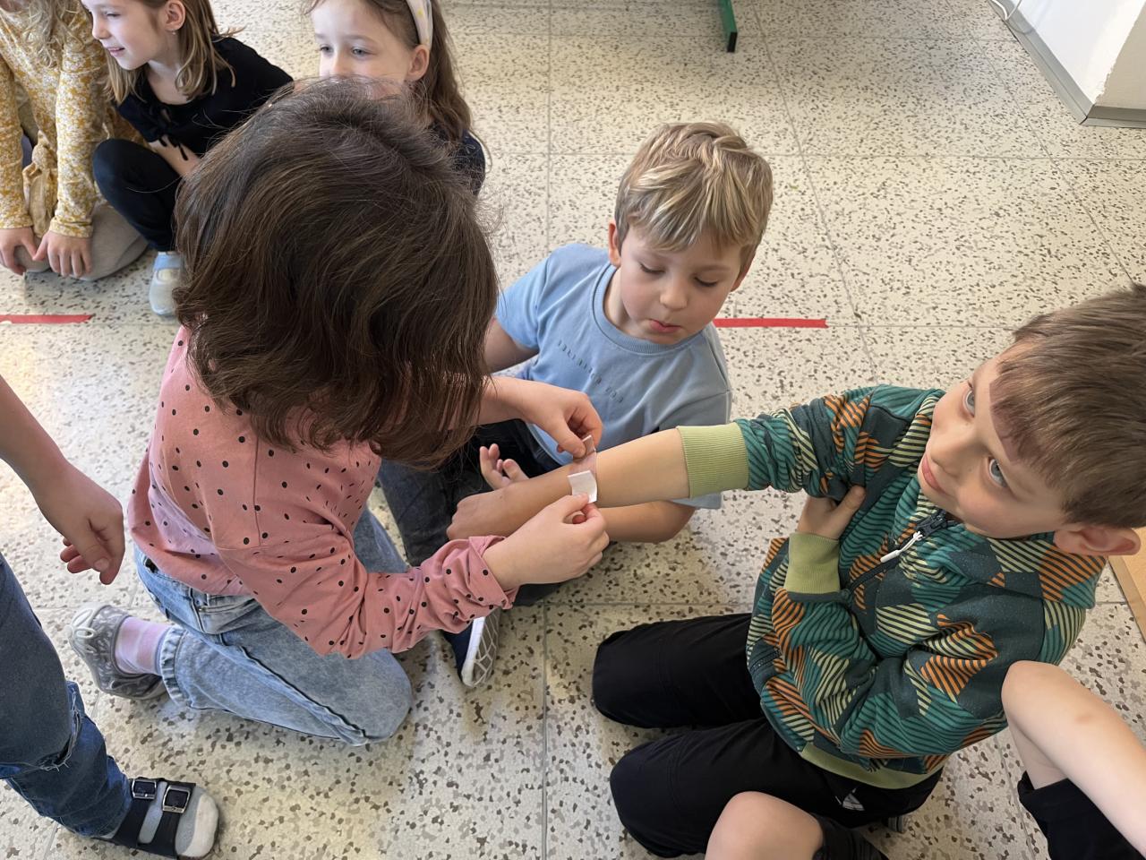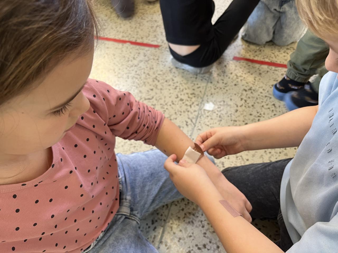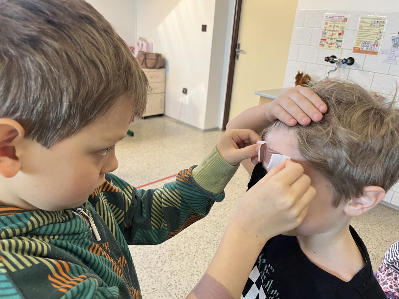 Dnes si prvňáčci zahráli na zraněné a záchranáře.