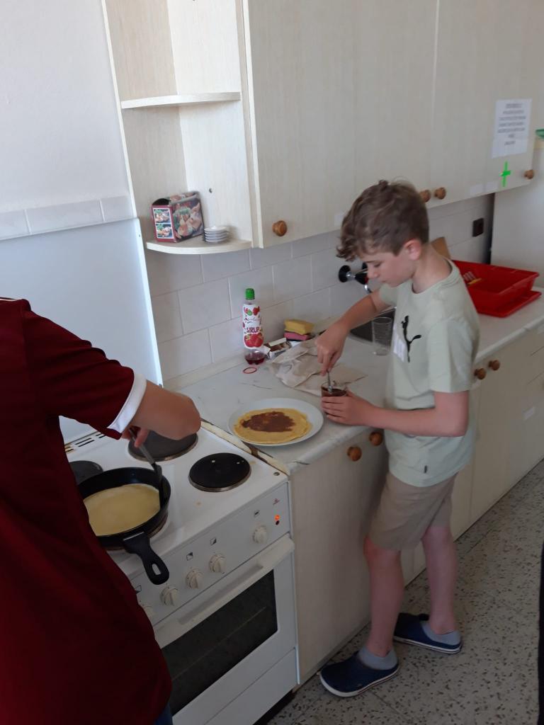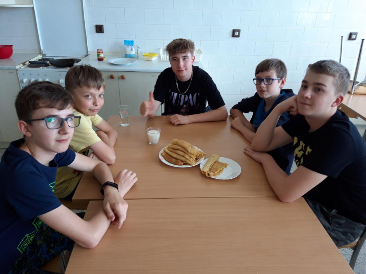 Kluci v rámci pracovní výchovy ve školní kuchyňce.