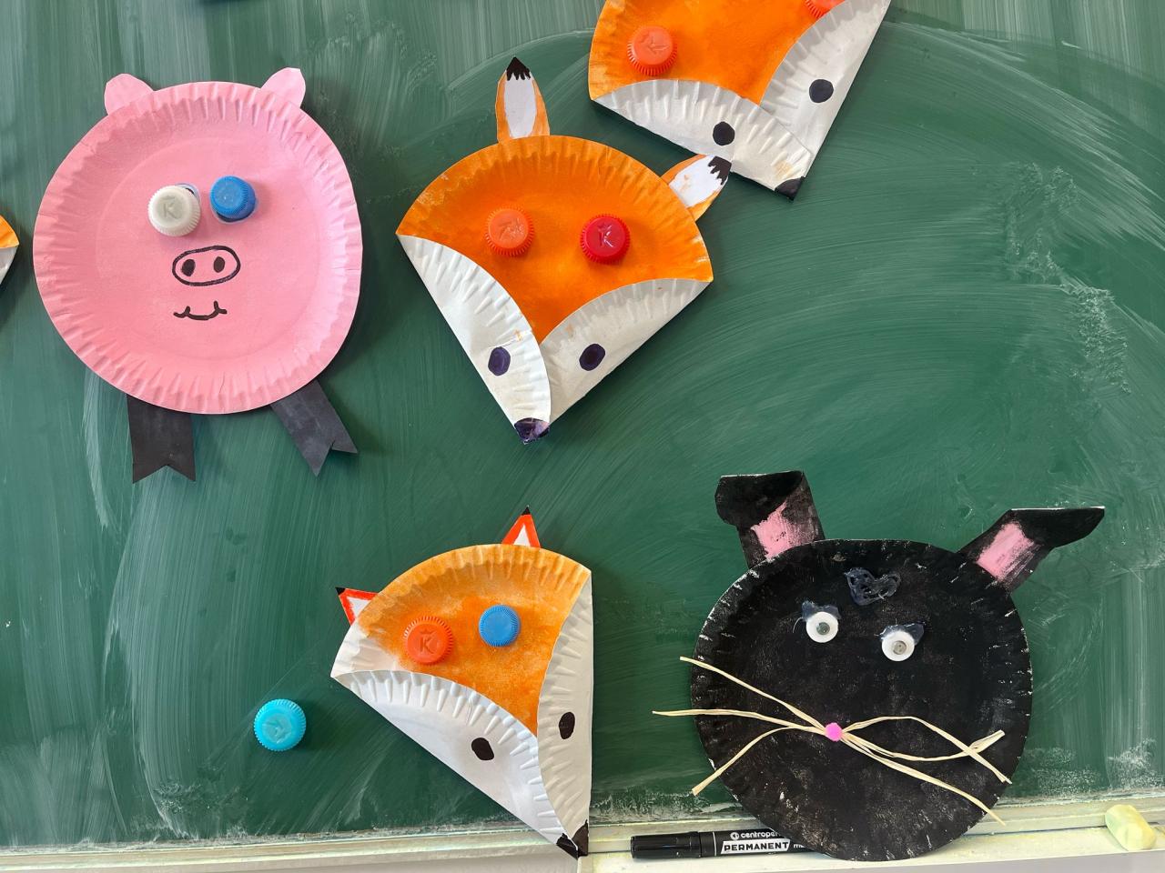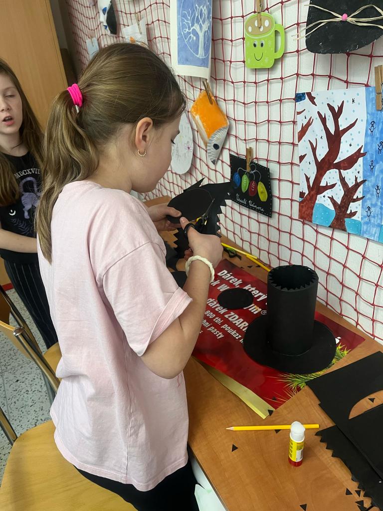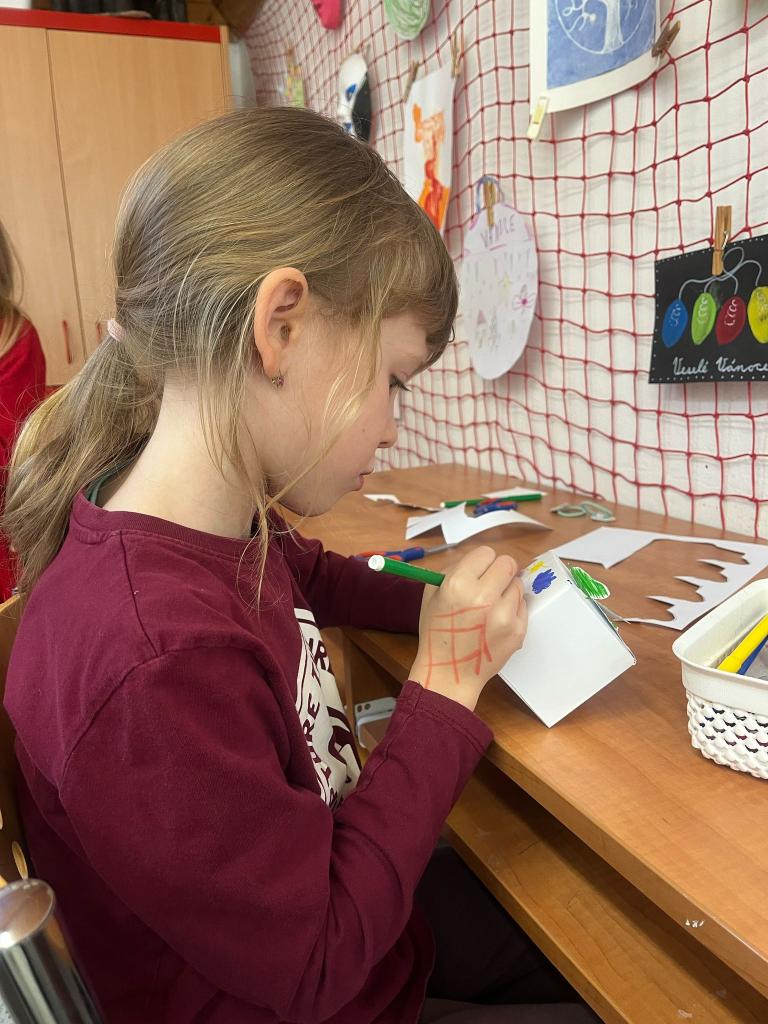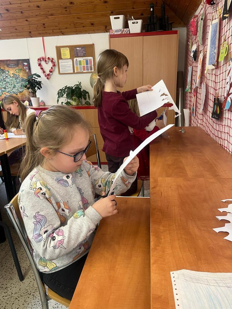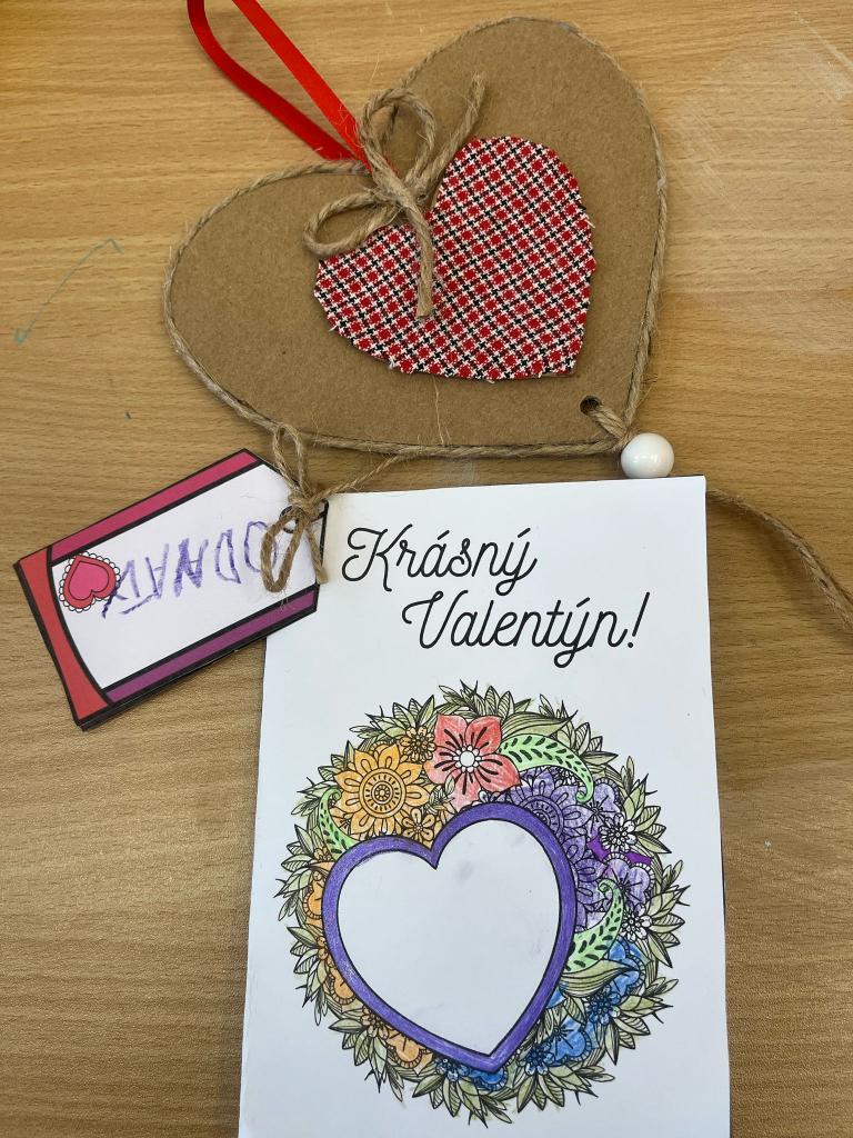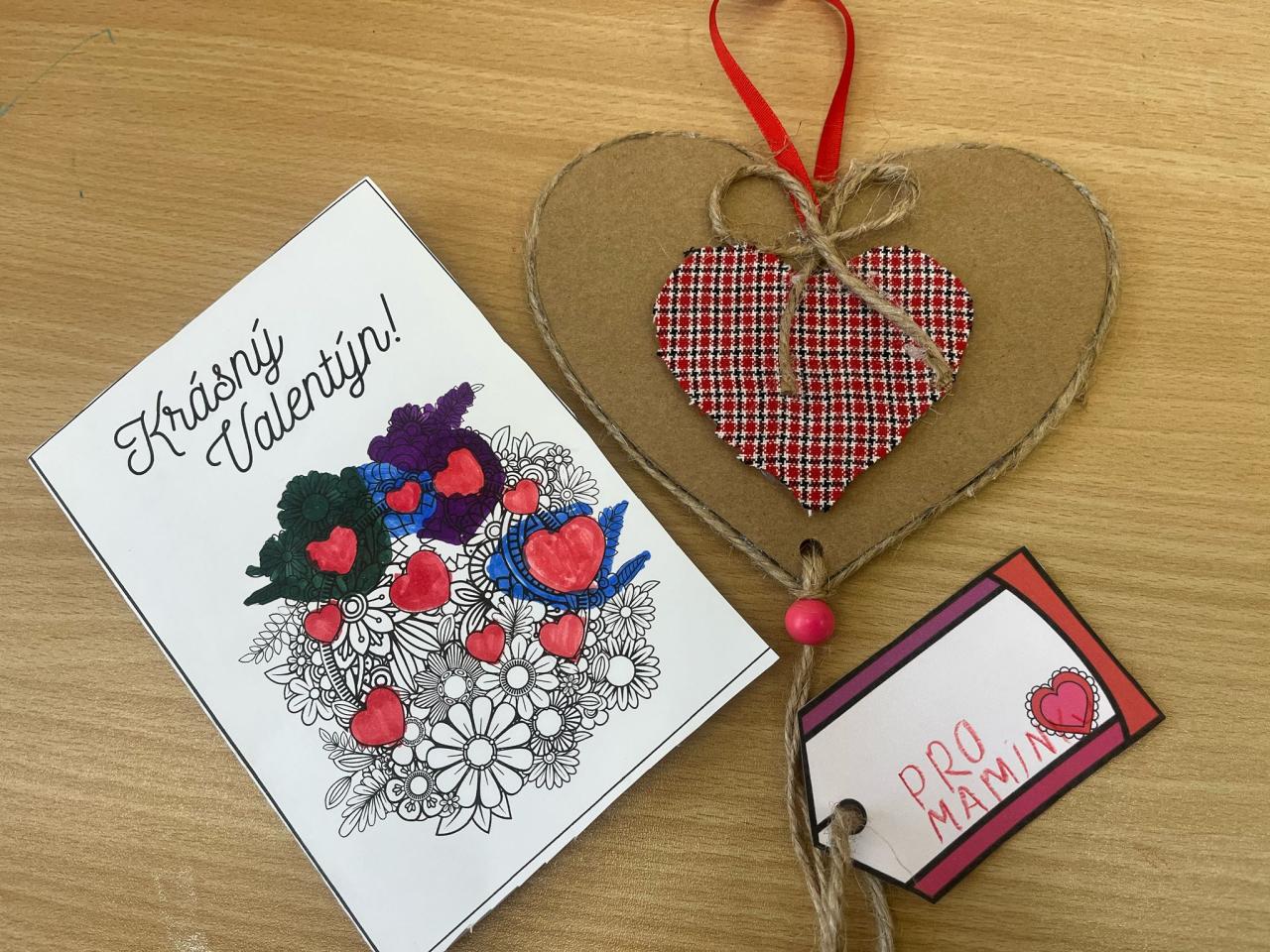 Únorové tvoření - práce s papírem, obličejové masky, svatý Valentýn a jarní výzdoba vestibulu školy. Rádi také chodíme ven na procházky nebo na dětské hřiště.