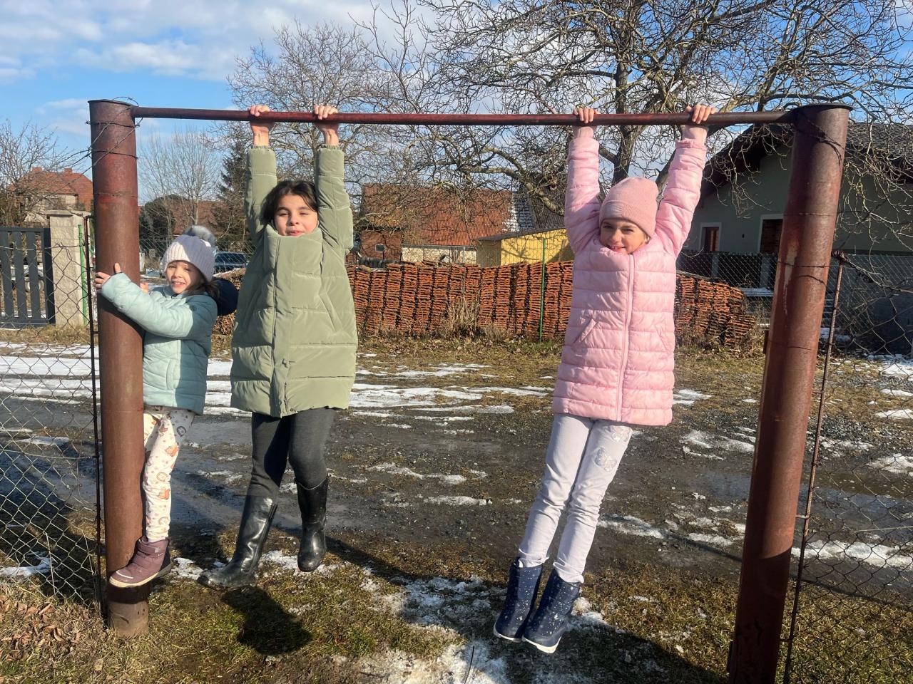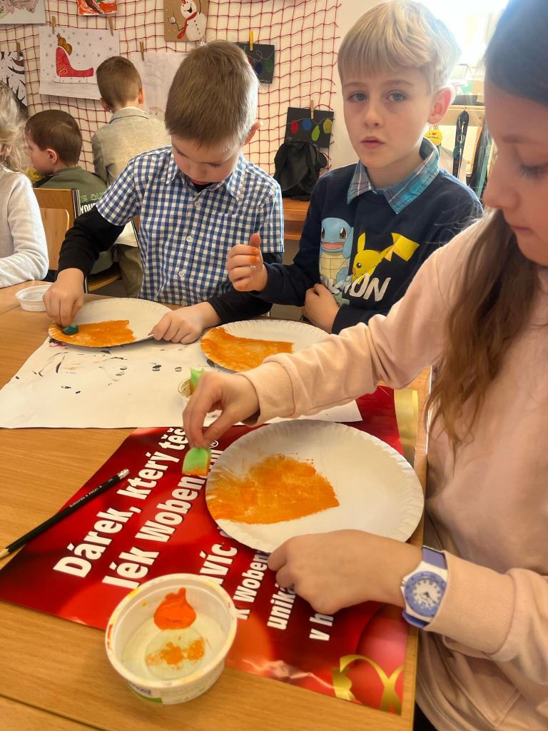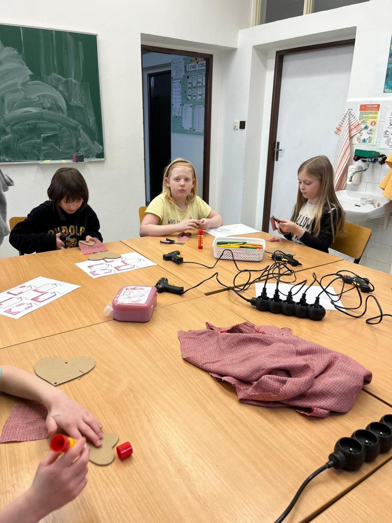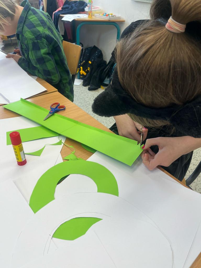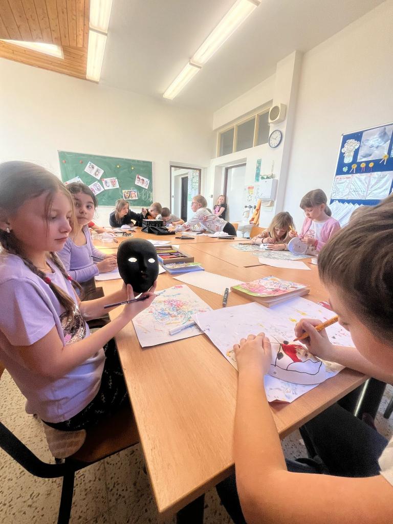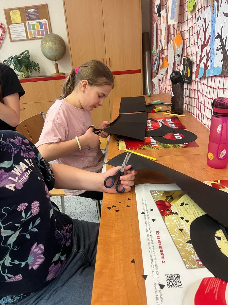 Únorové tvoření - práce s papírem, obličejové masky, svatý Valentýn a jarní výzdoba vestibulu školy. Rádi také chodíme ven na procházky nebo na dětské hřiště.