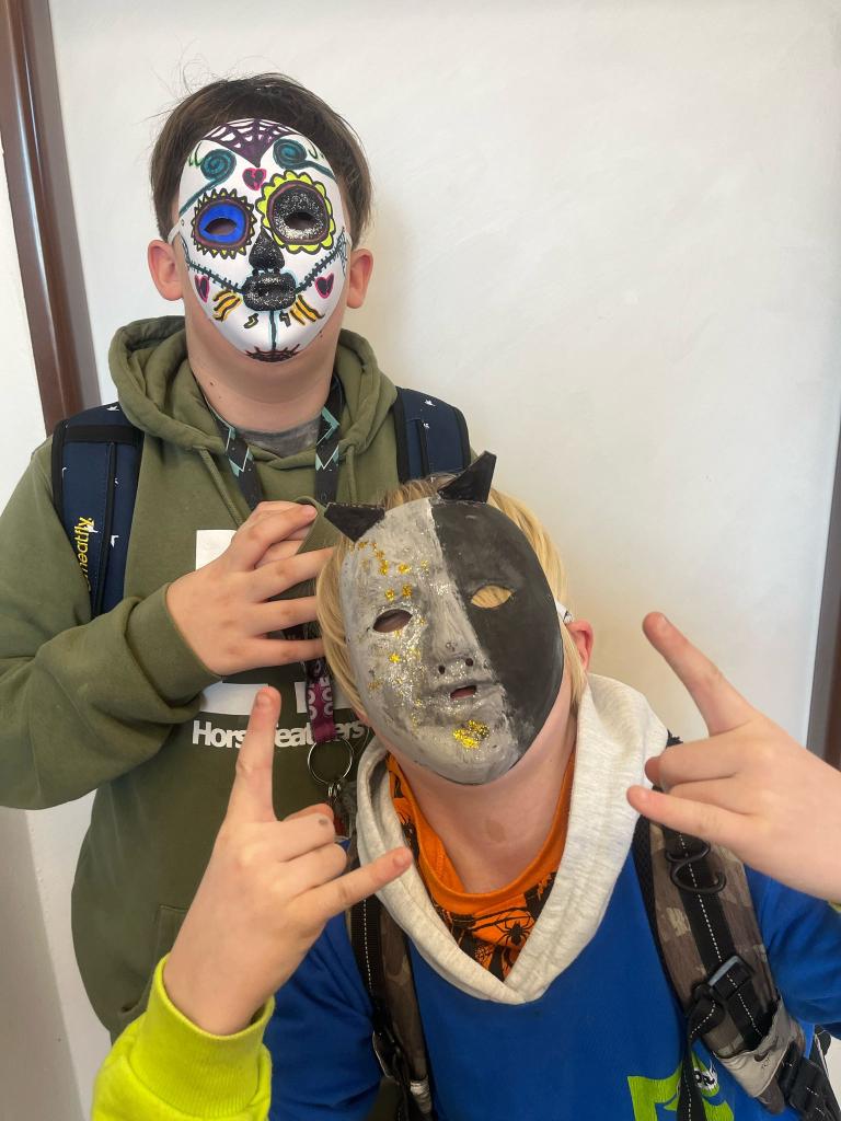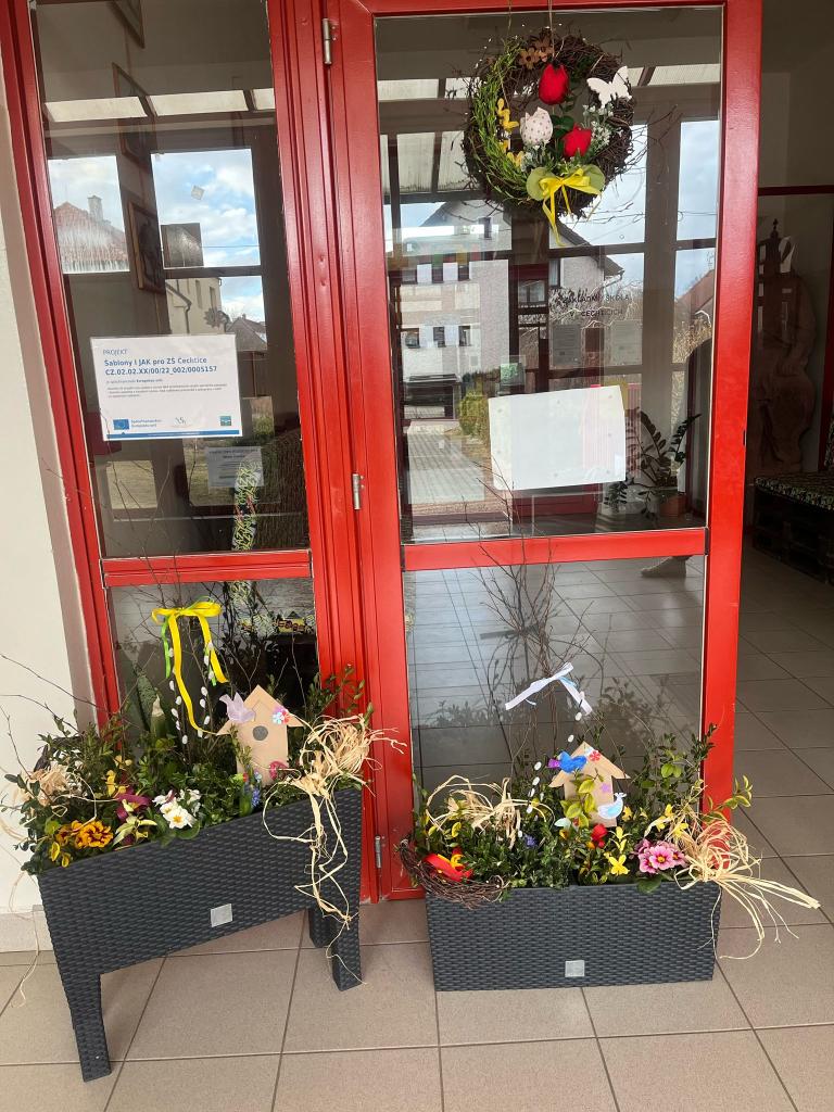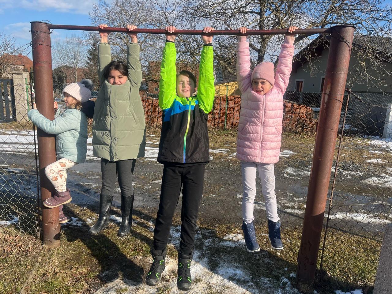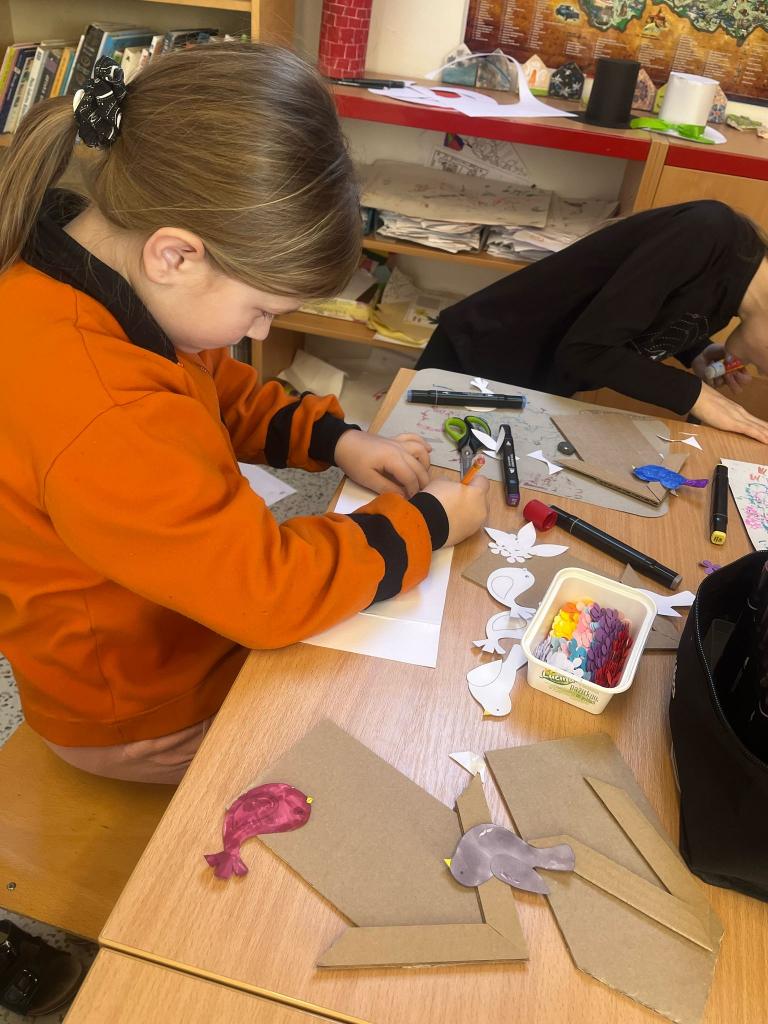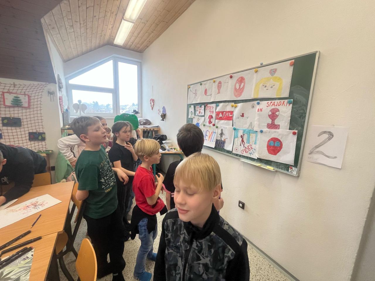 Únorové tvoření - práce s papírem, obličejové masky, svatý Valentýn a jarní výzdoba vestibulu školy. Rádi také chodíme ven na procházky nebo na dětské hřiště.