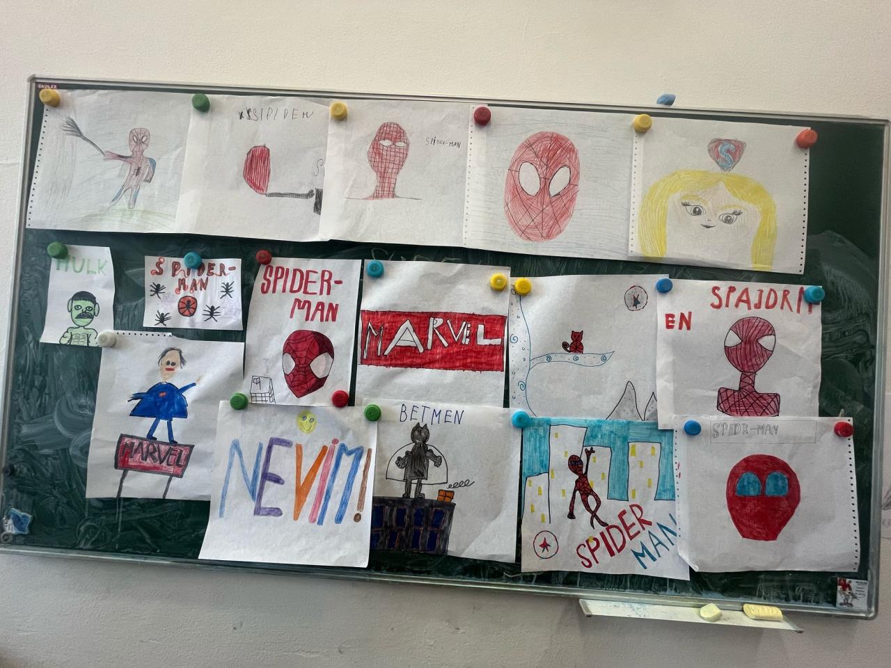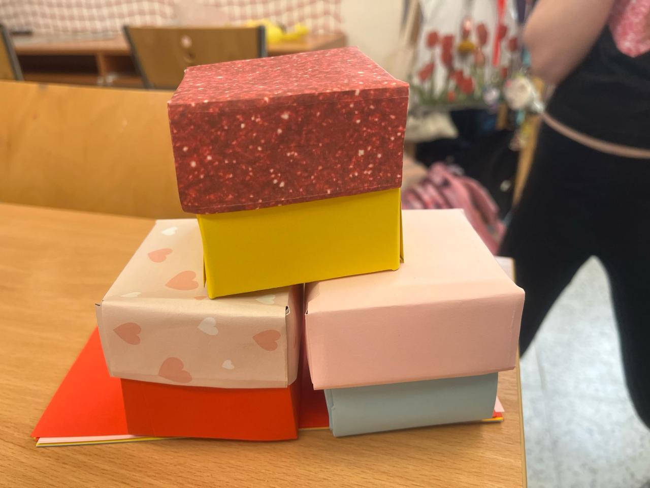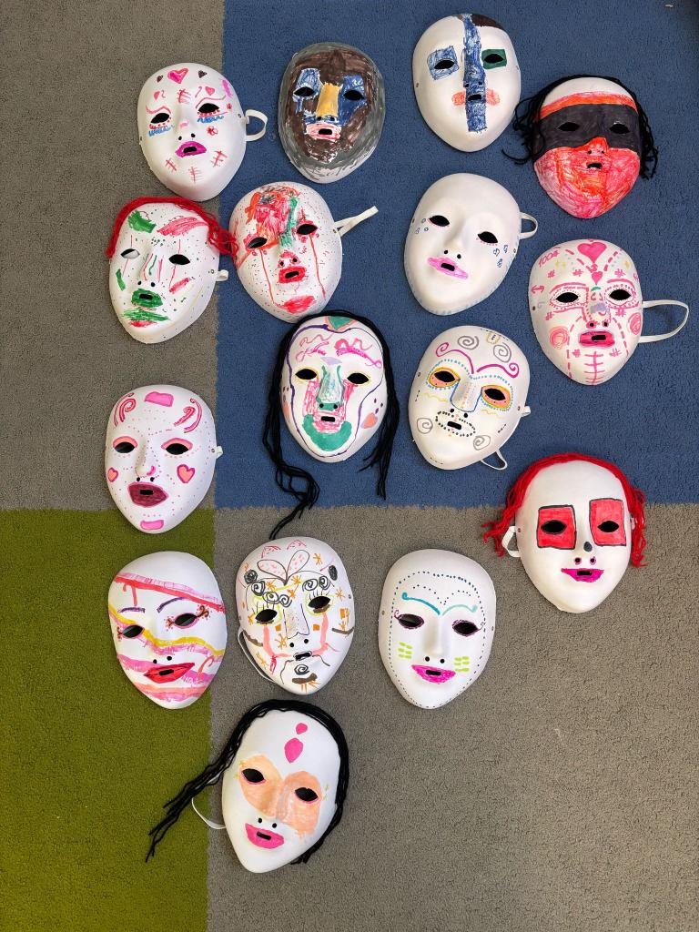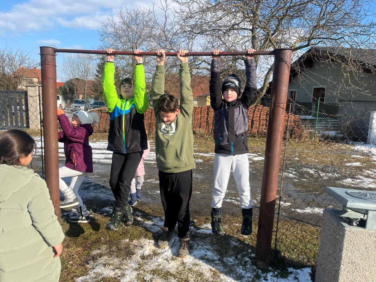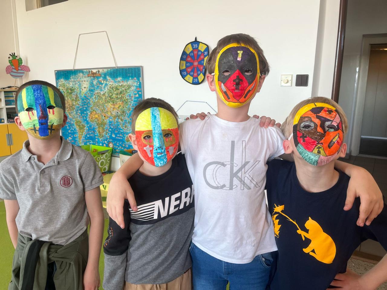 Únorové tvoření - práce s papírem, obličejové masky, svatý Valentýn a jarní výzdoba vestibulu školy. Rádi také chodíme ven na procházky nebo na dětské hřiště.