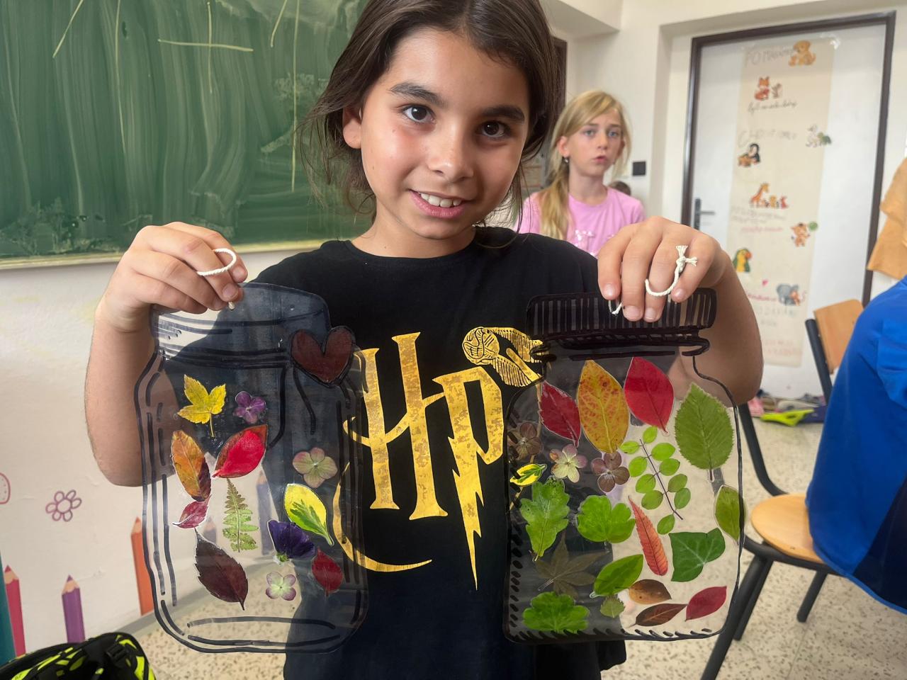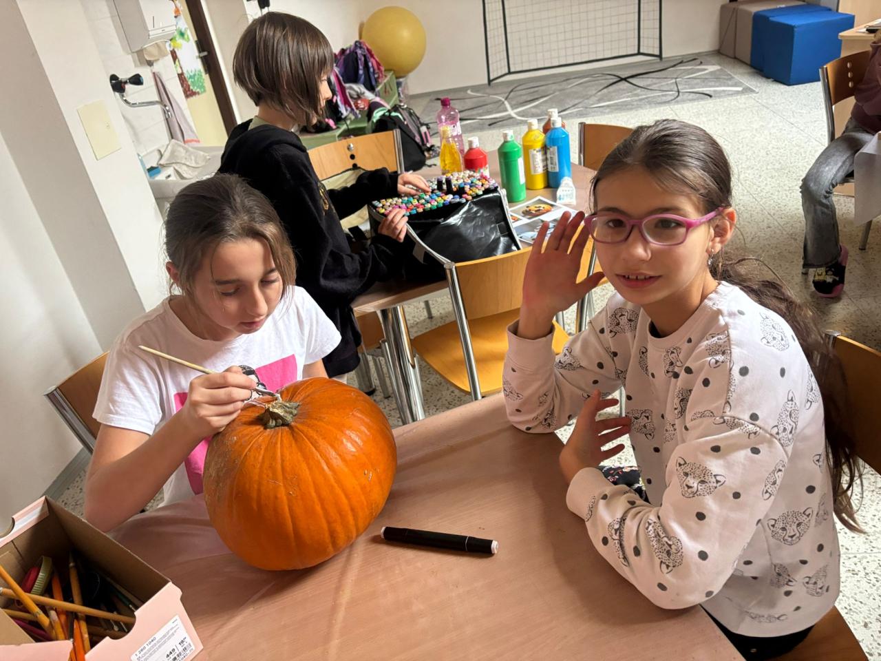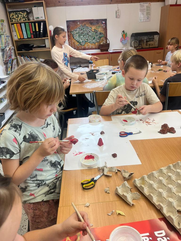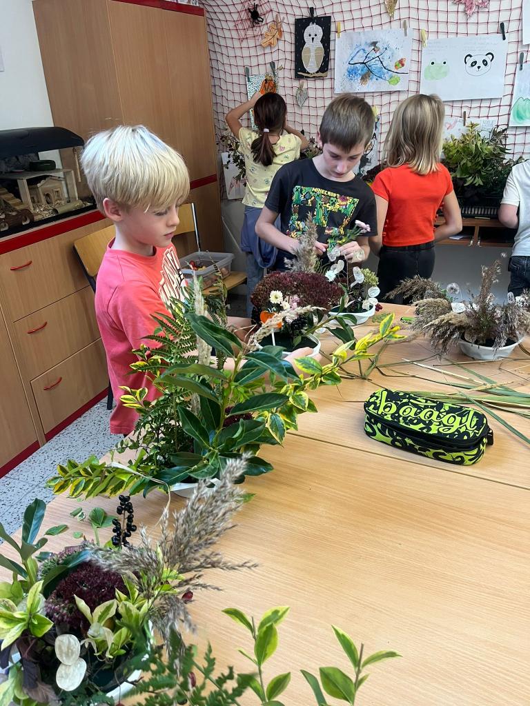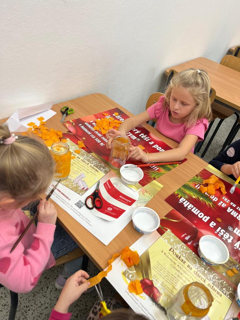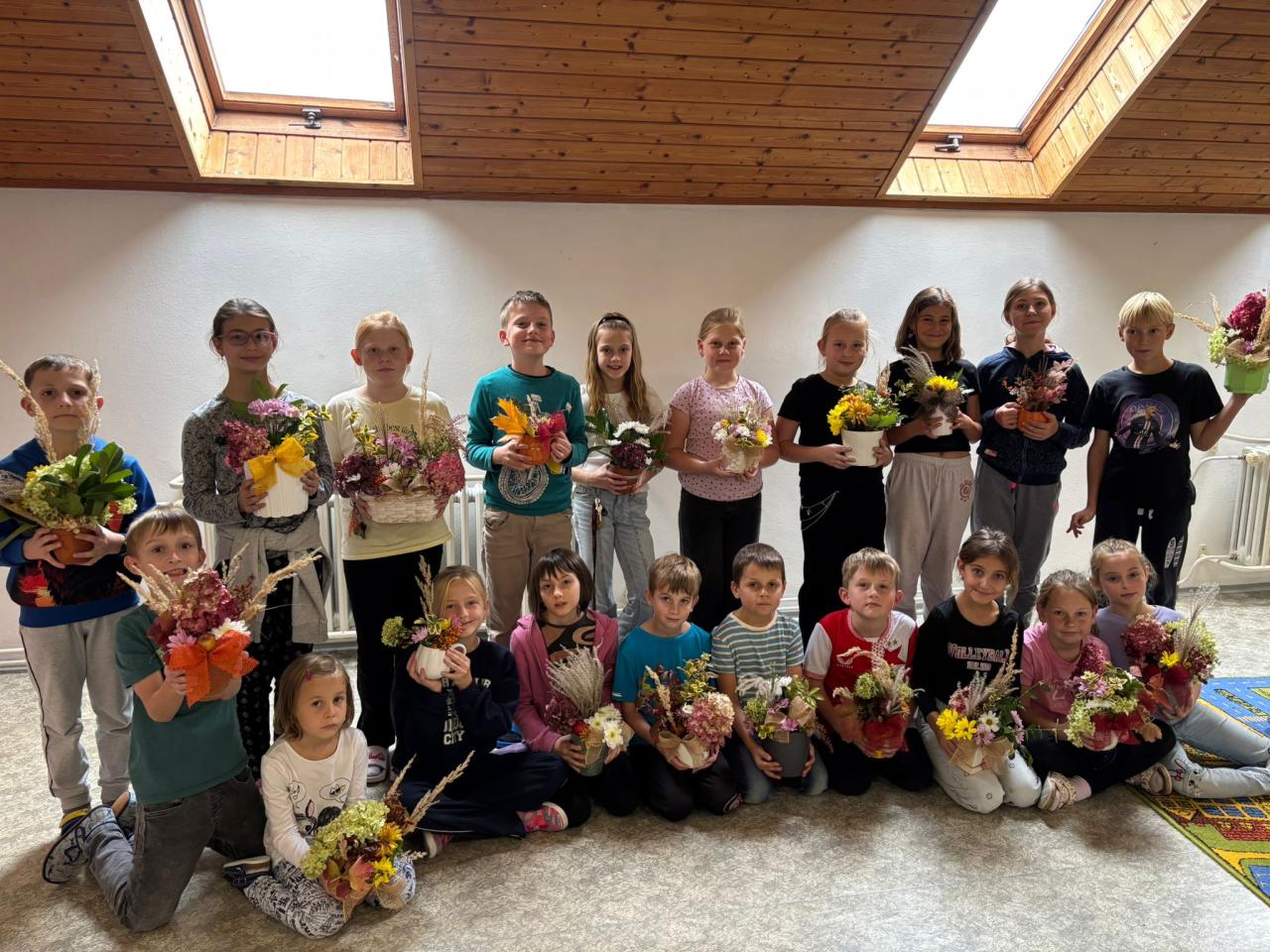 Děti vyráběly podzimní i halloweenské dekorace z papíru, dřeva i přírodnin. Malovaly strašidelné obrázky, tvořily dýně ze sklenic i barev a aranžovaly květinové podzimní misky. Fantazie a tvořivosti bylo všude plno!