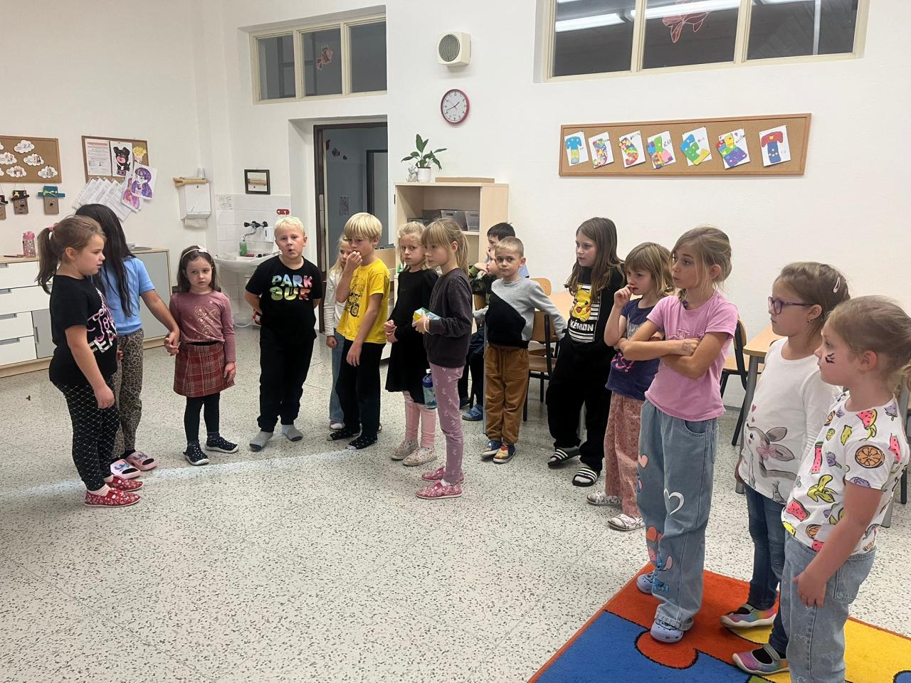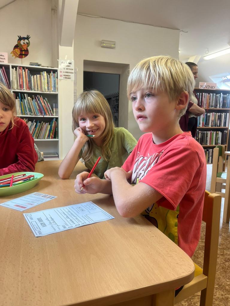Zajímavým zážitkem byla i návštěva obecní knihovny, kde si pro nás paní knihovnice připravila hravé čtenářské aktivity a příjemné povídání o knihách.