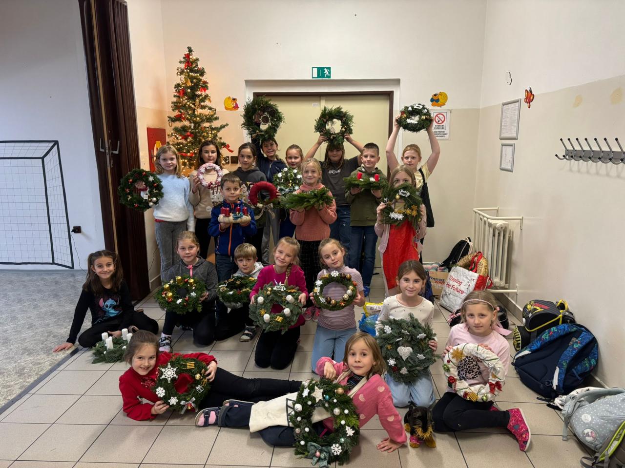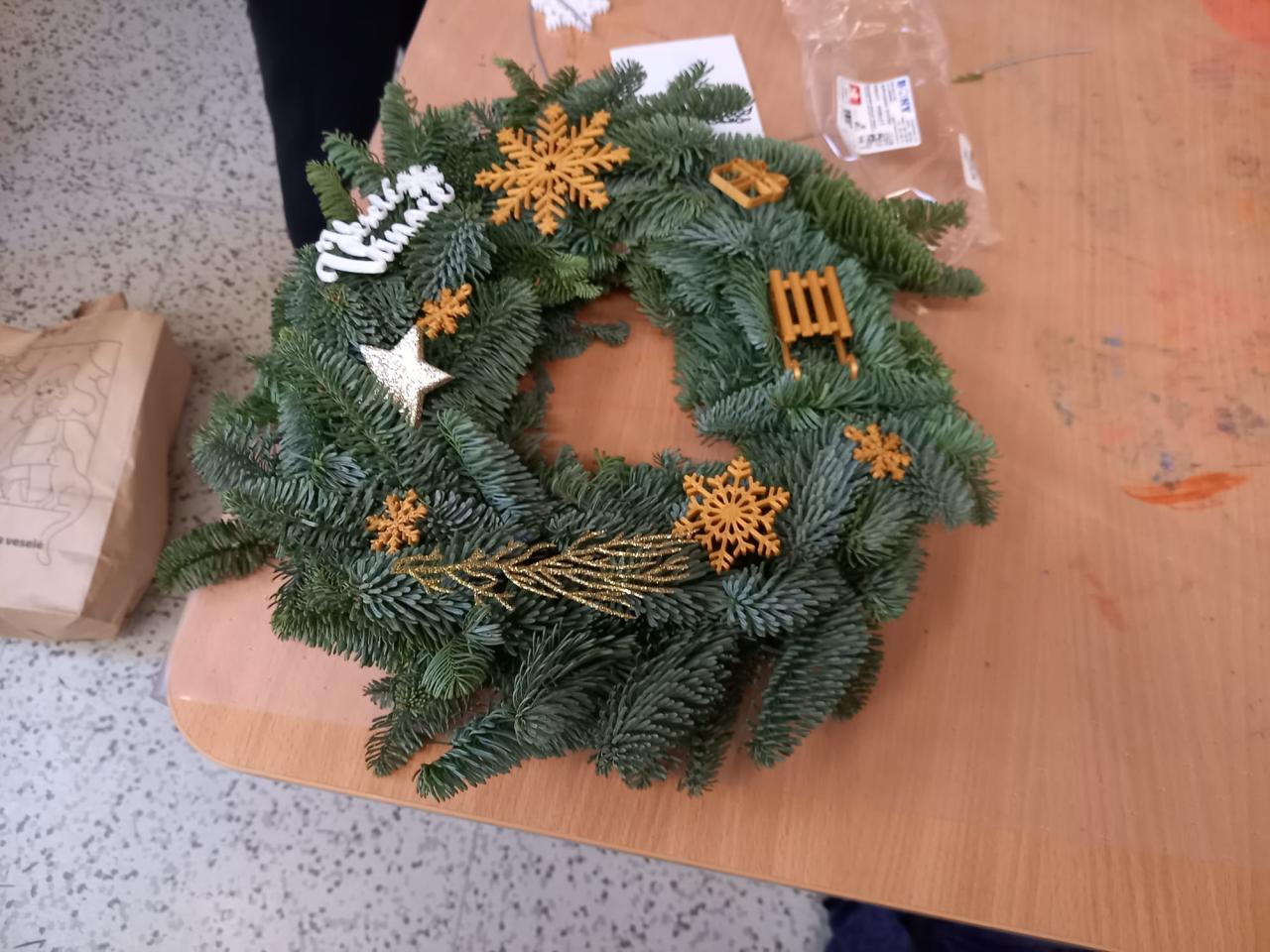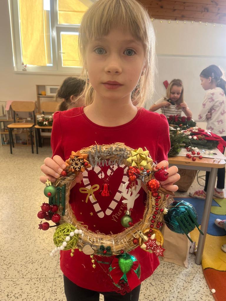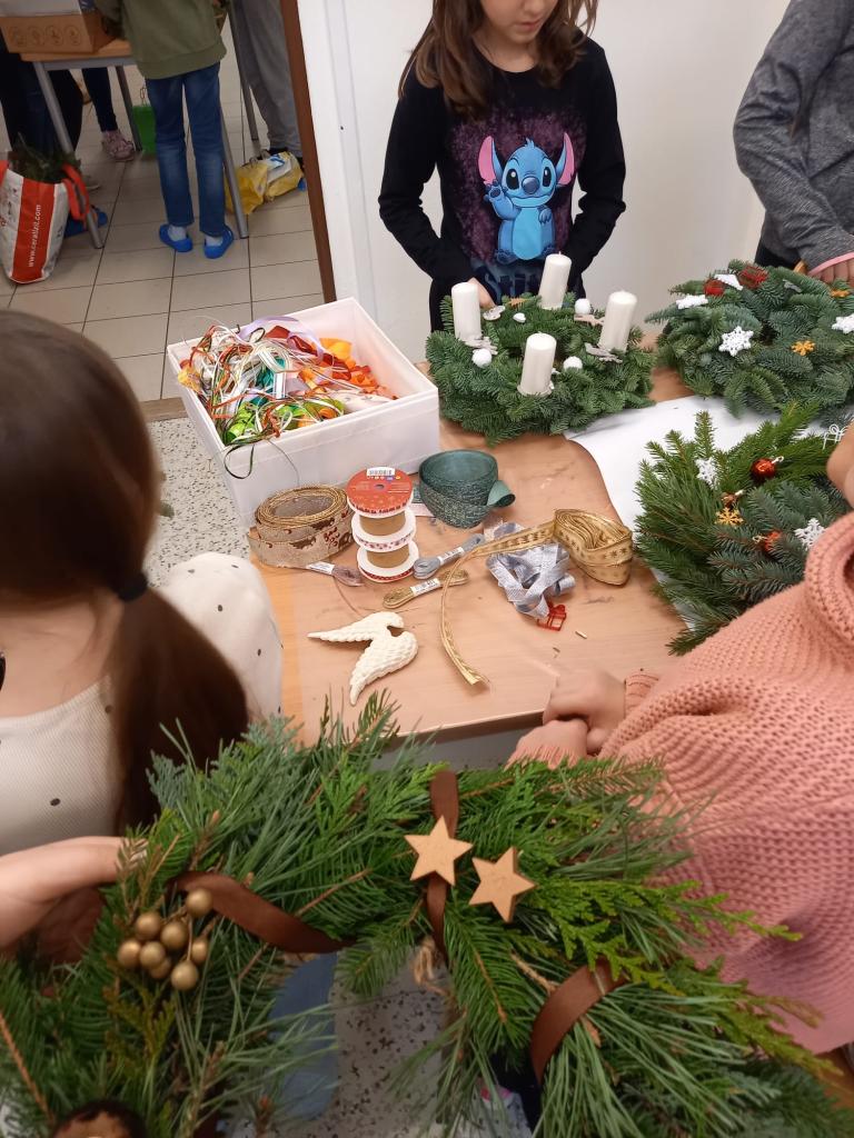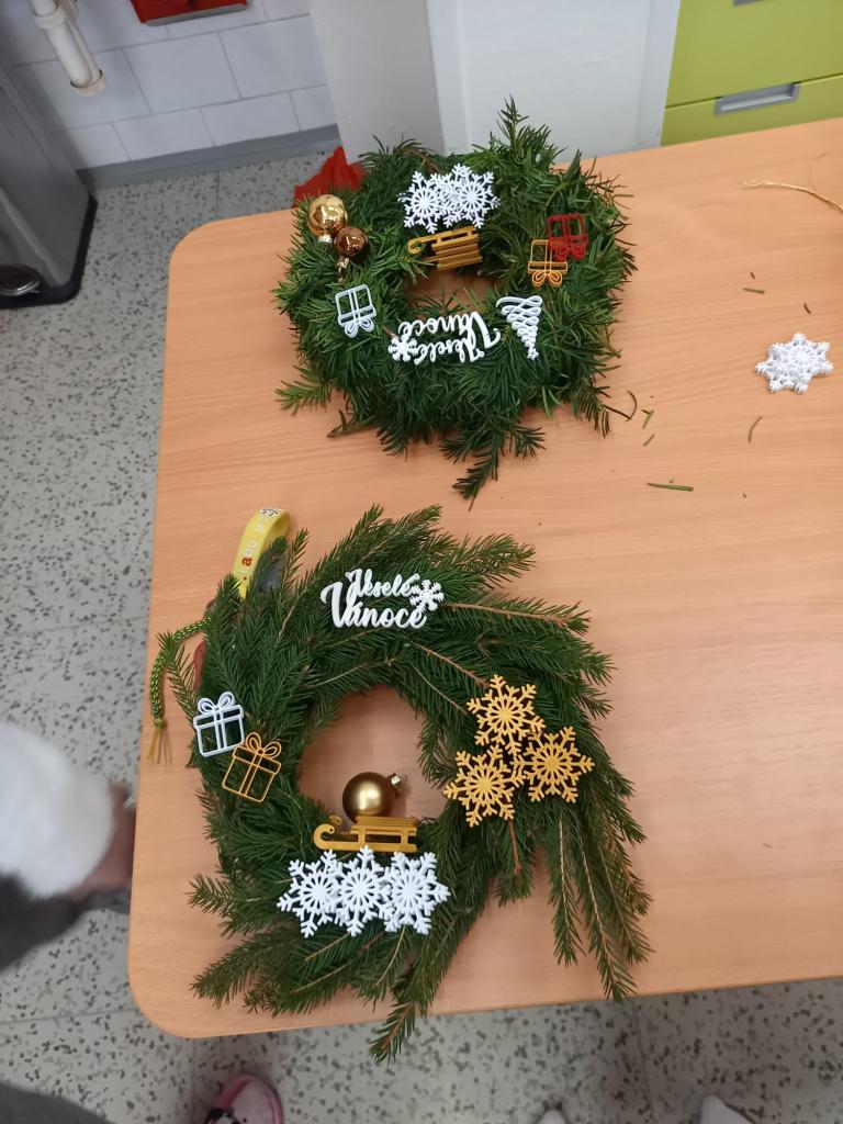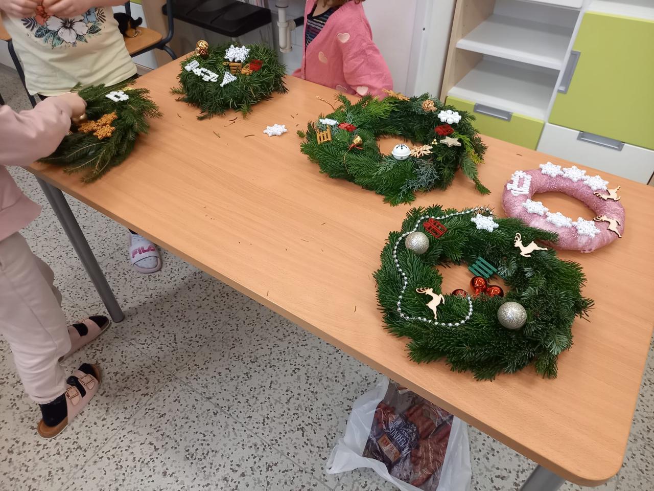 Děti si přinesly vlastní připravené věnce a ve družině je zdobily různými dekoracemi podle své fantazie. Někdo si vytvořil věnec na stůl se svíčkami, jiný zvolil věnec na dveře k zavěšení.