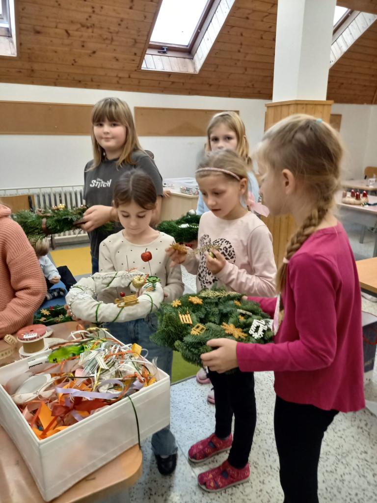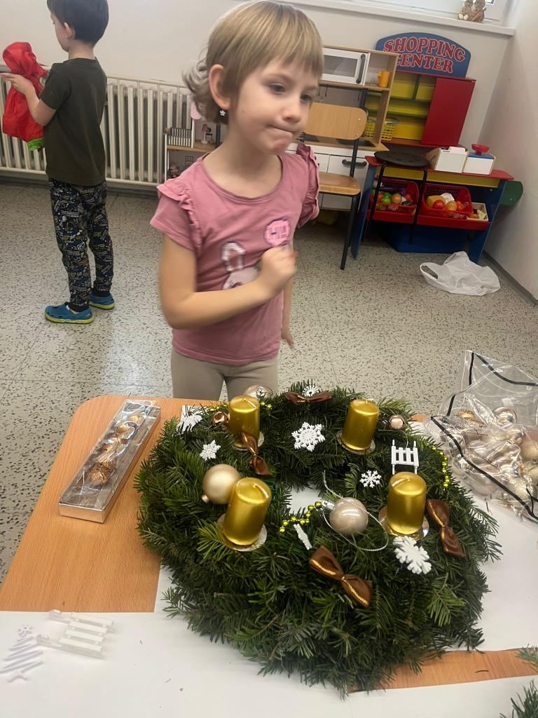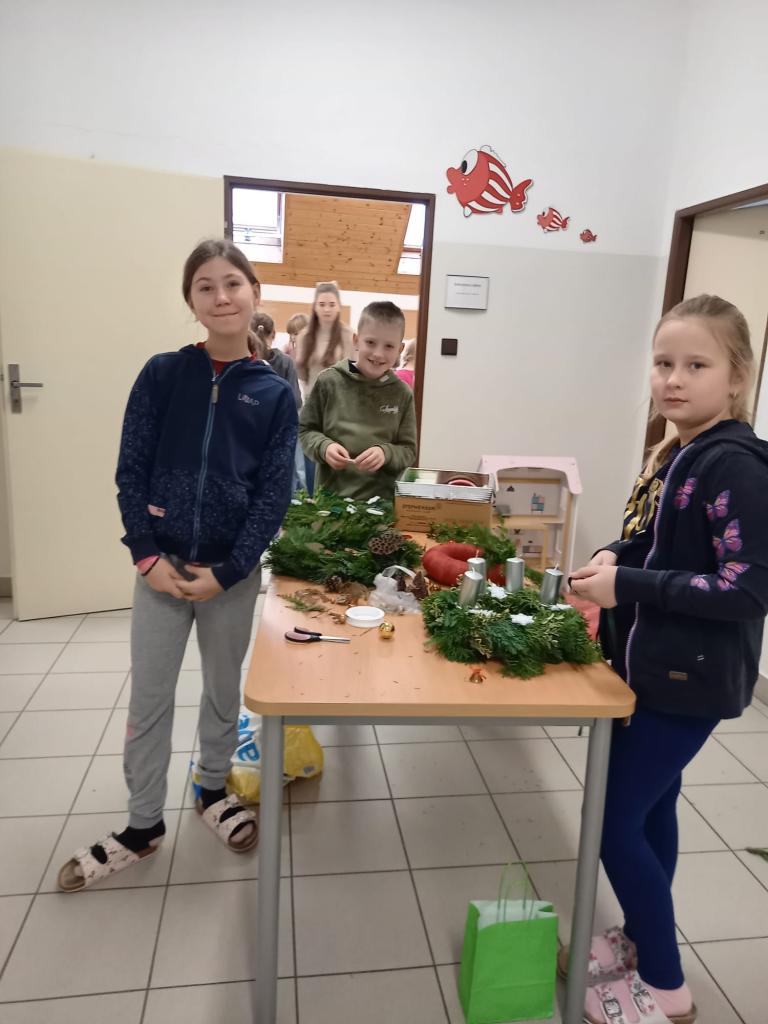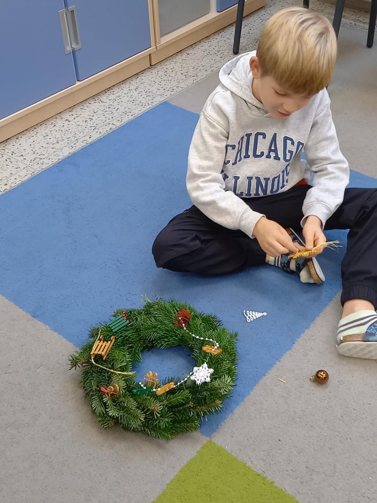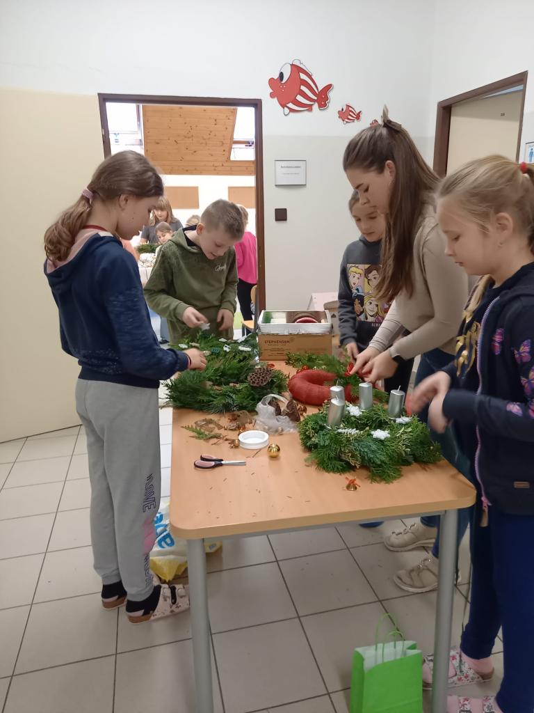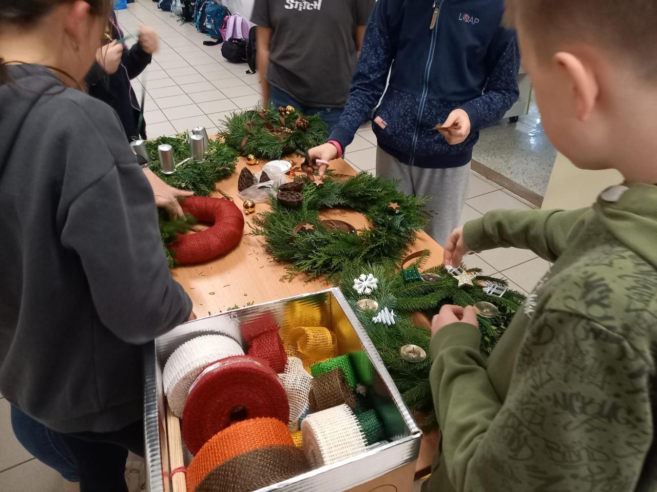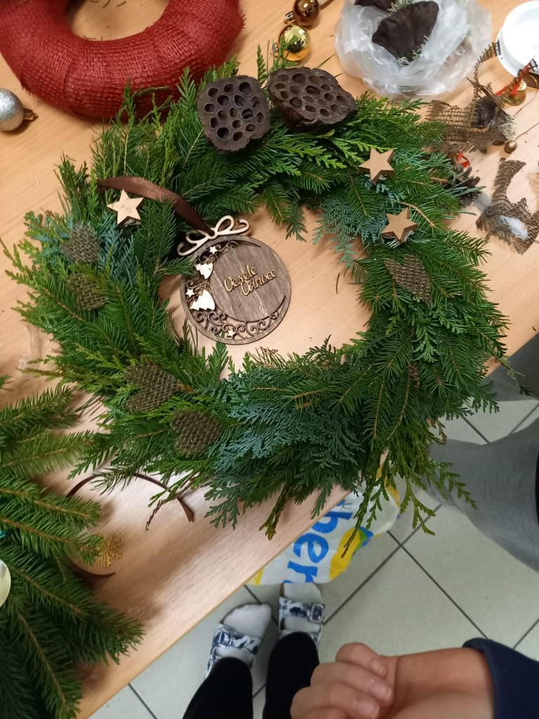 Děti si přinesly vlastní připravené věnce a ve družině je zdobily různými dekoracemi podle své fantazie. Někdo si vytvořil věnec na stůl se svíčkami, jiný zvolil věnec na dveře k zavěšení.