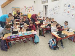Patroni z 9.A nám pomohli s přihlášením na tablety.