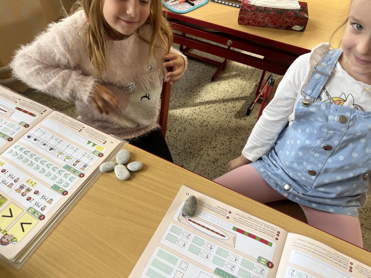 V matematice nám kamínky pomohly znázorňovat více a méně.