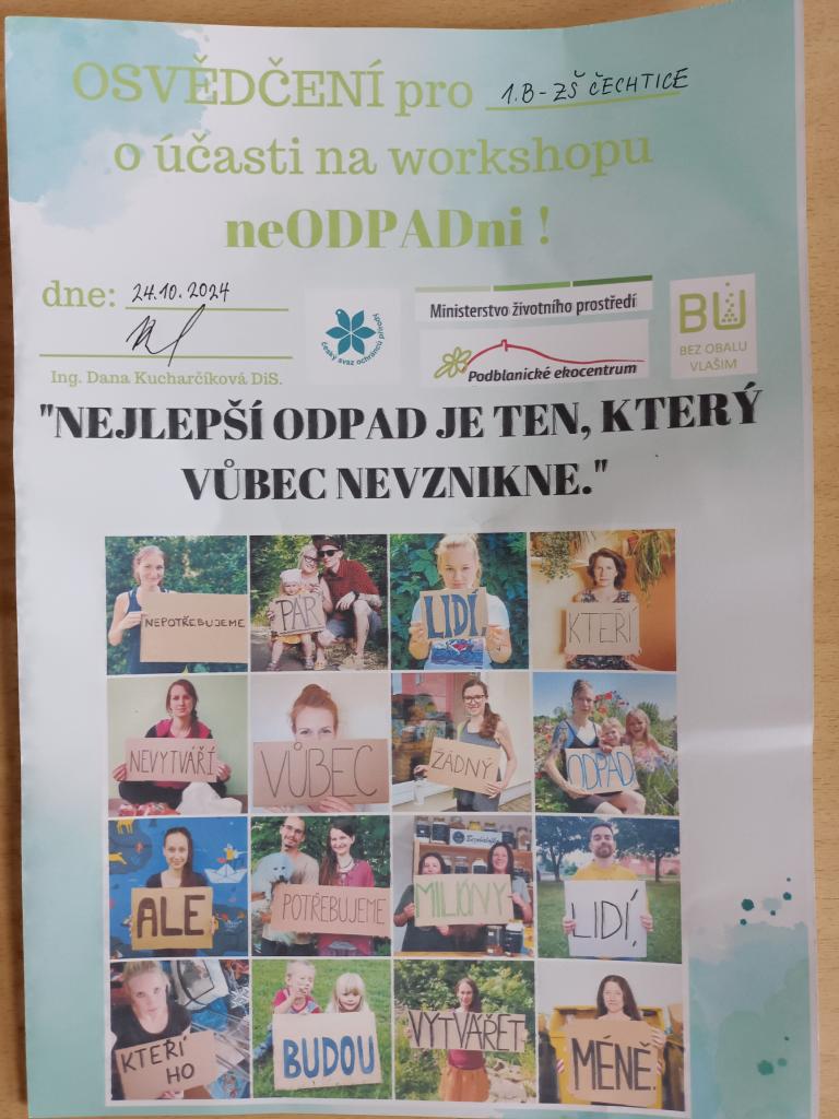 Před podzimními prázdninami jsme navštívili obchod Bez obalu,kde jsme se dozvěděli zajímavé informace o odpadu kolem nás.Všichni si pamatujeme:"Nejlepší odpad je ten,který nevznikne."
