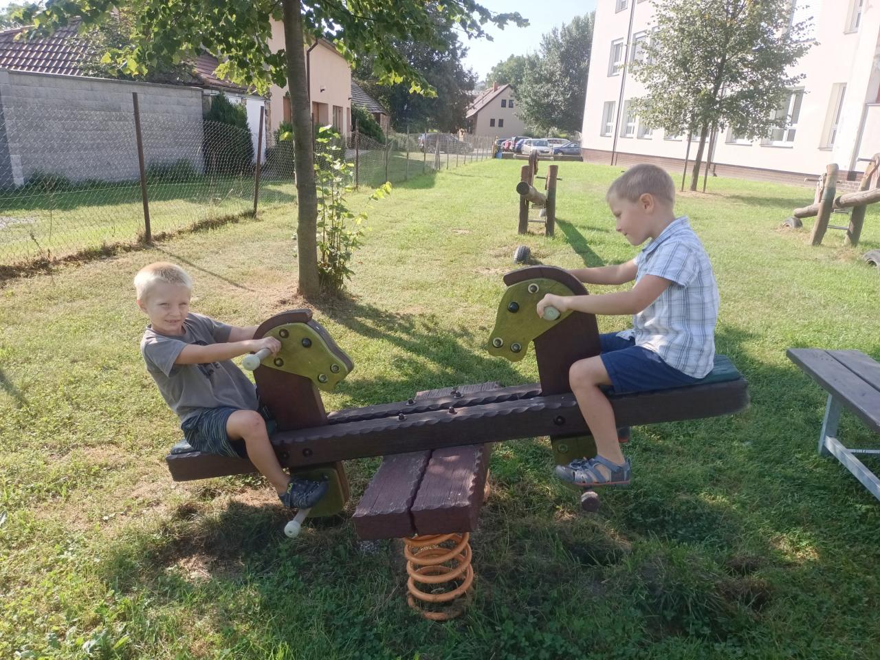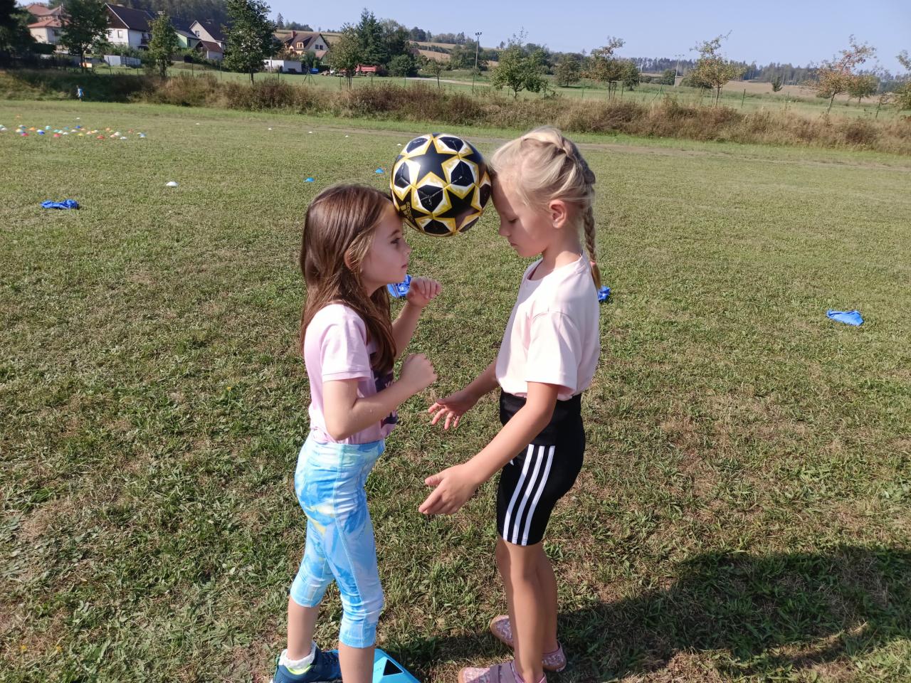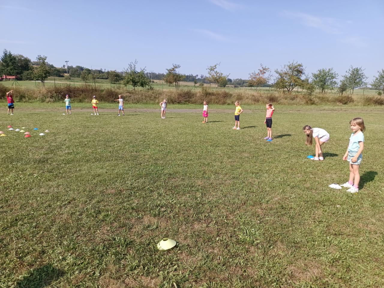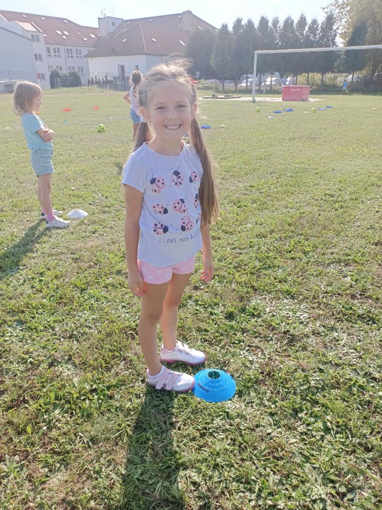 Prvňáčci zasedli poprvé do školních lavic.První týden si vyzkoušeli fotbalový trénink.Našli si kamarády,užili si zábavu na hřišti.Začali se pomalu učit.O přestávce si užívají skákacího panáka.Vzhůru do dalšího týdne.